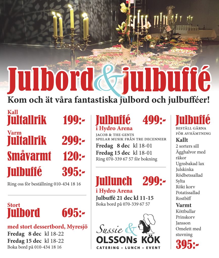 I dagens lunch/buffé ingår: dryck, kaffe och kaka